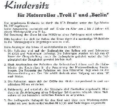 überprüfen. Im Registrierschein für Mopeds muß der Vermerk Kindersitz