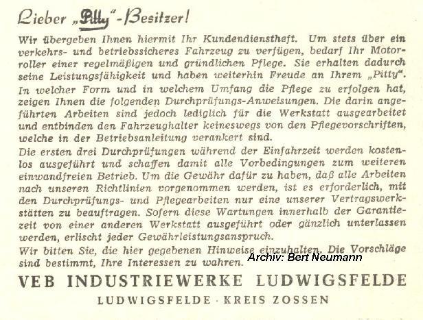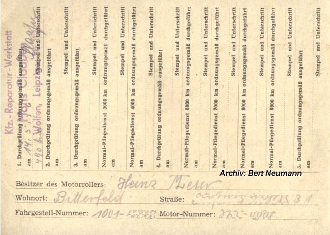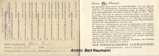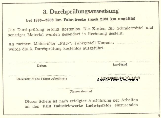 Dieses Heft wurde bei einer Durchsicht des Rollers in der Werkstatt vorgelegt und von