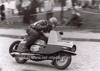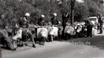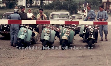 Werner Musiol ( zweiter von Links) bewährte sich auf dem IWL-Roller |