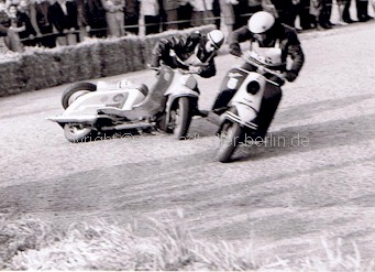 Hier "jagen" sich Kontrahenten der Klasse bis 150 ccm für Motorroller Berlin. |