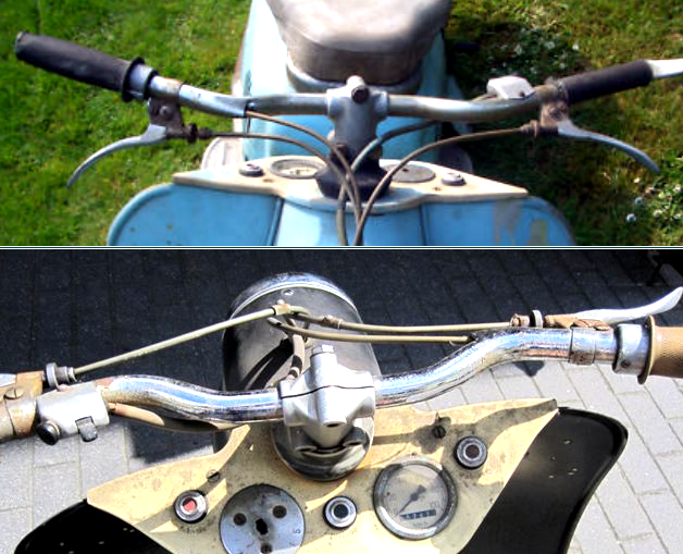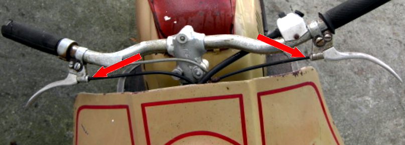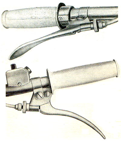 | Der Pitty, als erstes Fabrikat hatte noch keine Einstellschrauben an den Brems- und Kupplungsarmaturen, ebenso die ersten Wiesel wohl auch nicht, aber dann kam in ca. 1958 eine Änderung, die sich nicht im Ersatzteilkatalog für Pitty, Wiesel und Berlin finden lässt. | ||