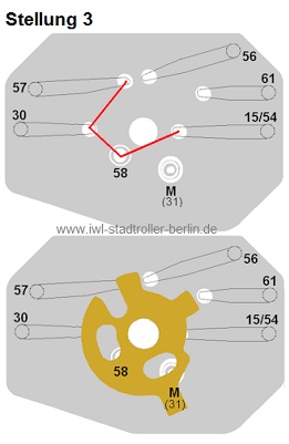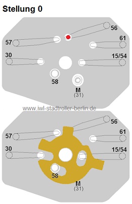 Zündung und Licht aus - keine Verbraucher - die Kontaktscheibe hat Verbindung mit 56 |
