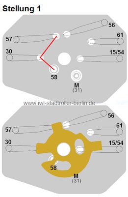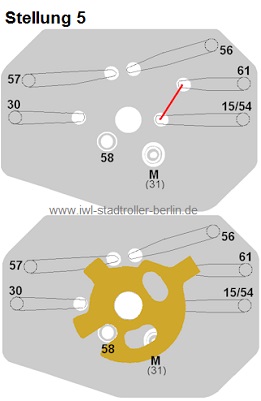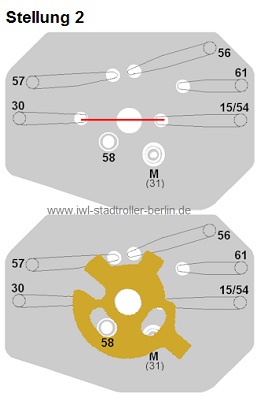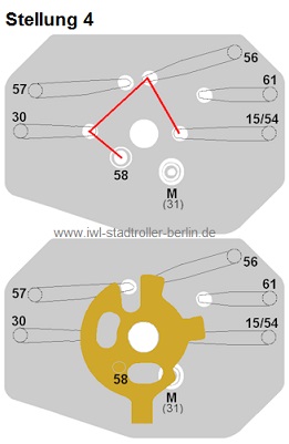 und Schlusslicht- die Kontaktscheibe hat Verbindung mit 30, 15/54, 56, 58