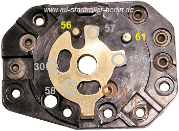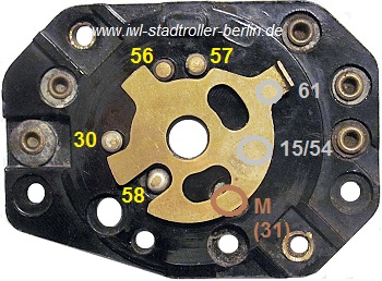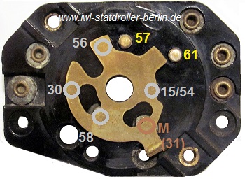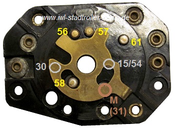 Schlusslicht- die Kontaktscheibe hat Verbindung mit 30, 15/54, 57, 58 |