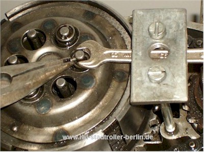 Mauelschlüssel und "Gegenhalter" niederdrücken |