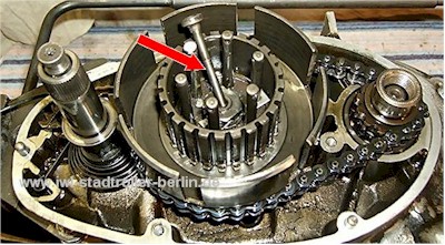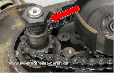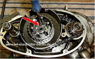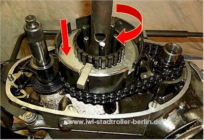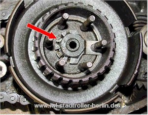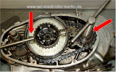 gelöst, die Kupplungstrommel mit Kette und Ritzel abheben. |