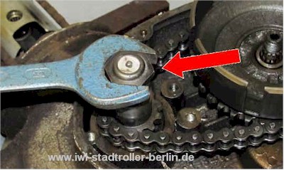 das Antriebskettenrad vom Kurbelwellenstumpf lösen. |